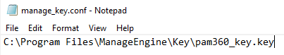 המערכת תקרא את מיקום המפתח מקובץ manage_key.conf שנמצא בנתיב ManageEngine\PAM360\conf