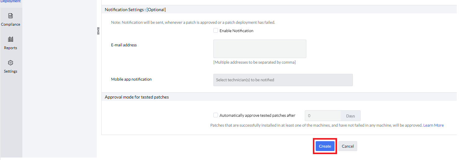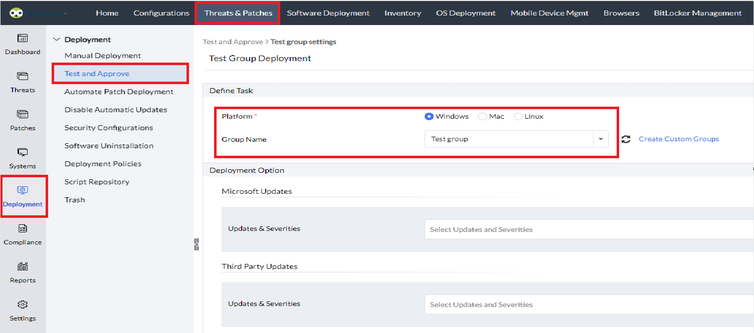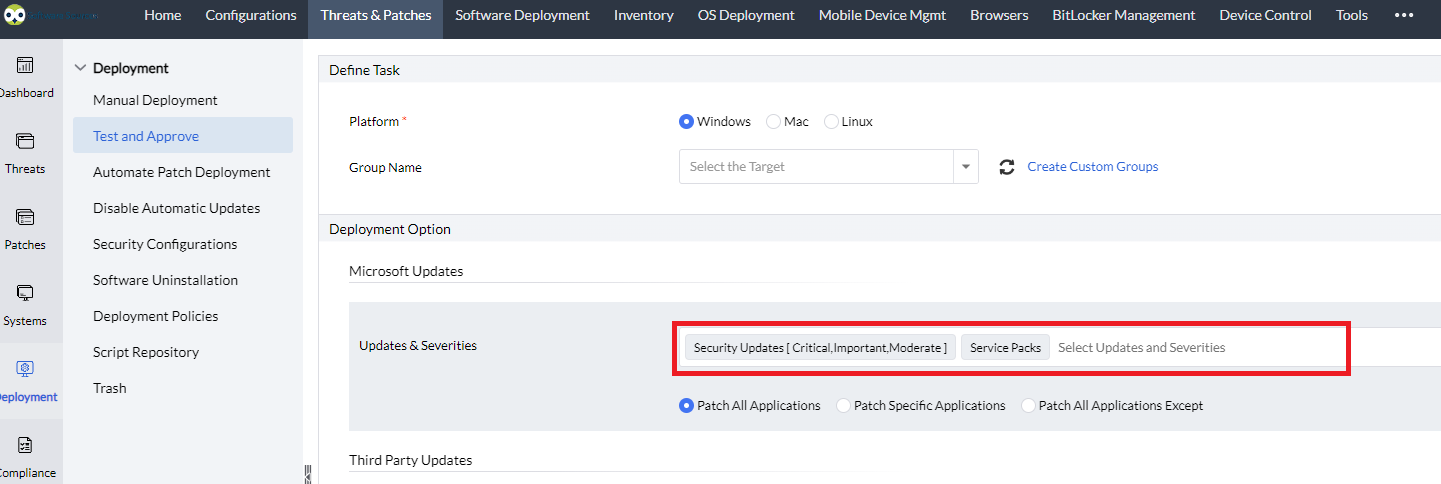 3. תחת סעיף "Deployment Criteria" ניתן לבחור את מספר הימים בין פרסום הpatch לבין הטמעתו.