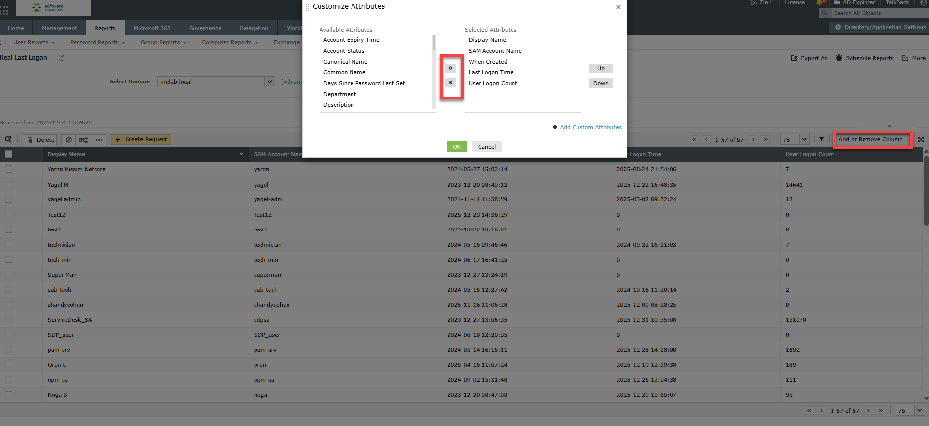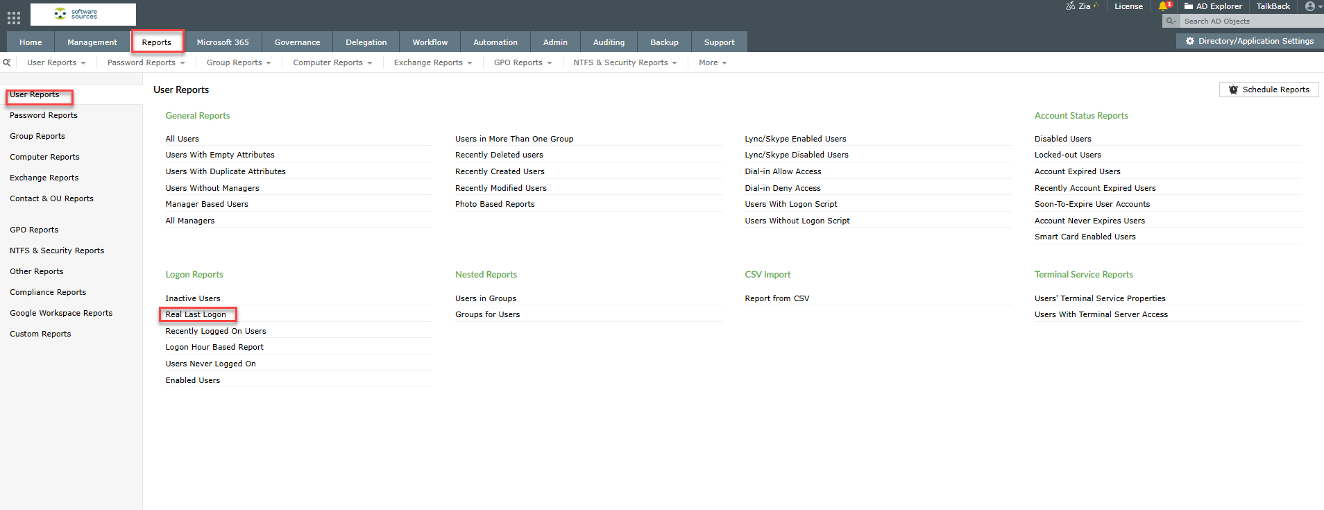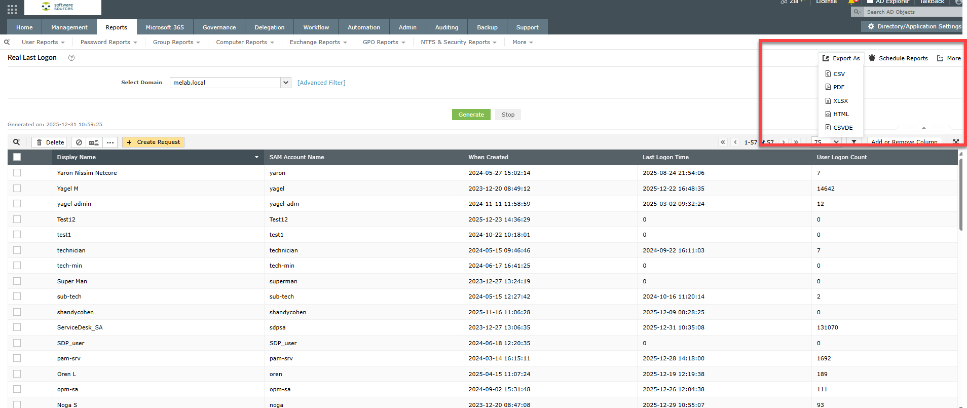 על מנת להוציא דו"ח של ההתחברות האחרונה של המשתמשים יש לבצע: