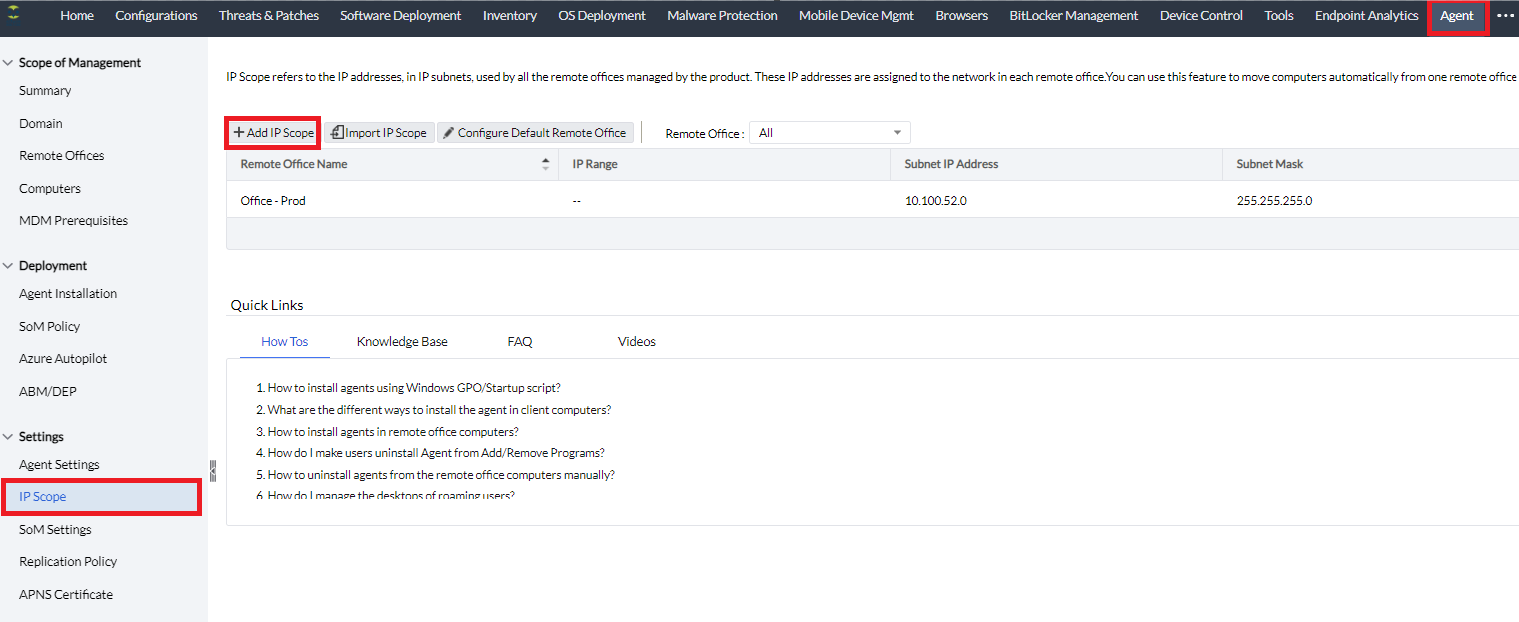 נלחץ על הנתיב הבא: Agent->IP Scope-> Add IP scope