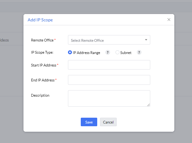 בחלון שנפתח נגדיר את טווח הIP אליו המחשבים ברשת שייכים, עבור כל remote office שנמצא בשימוש: