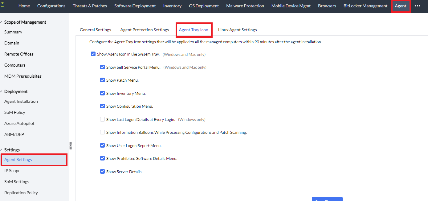 נלחץ על הנתיב: Agent - > Agent Settings -> Agent tray icon: