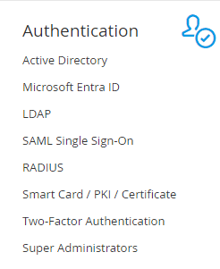 לאחר יבוא המשתמשים והגדרת התפקידים יש להפעיל אותנטיקציה מאובטחת למערכת דרך Active Directory\ LDAP \Two-Factor Authentication \ SAML