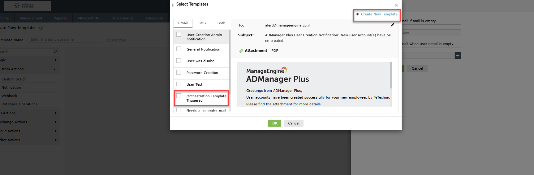 במידה וכבר יש לנו נוסח מייל נבחר בו, במידה ולא נלחת על create new template וננסח הודעת מייל שתשלח.