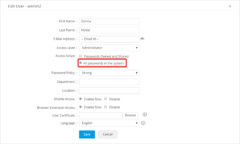 בחלון שנפתח נערוך את ה Access Scope של האדמין ל