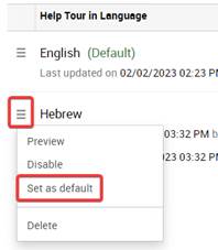 5. ניתן לערוך את הסיור בלחיצה על שם השפה בדוגמא - "English (Default)":
