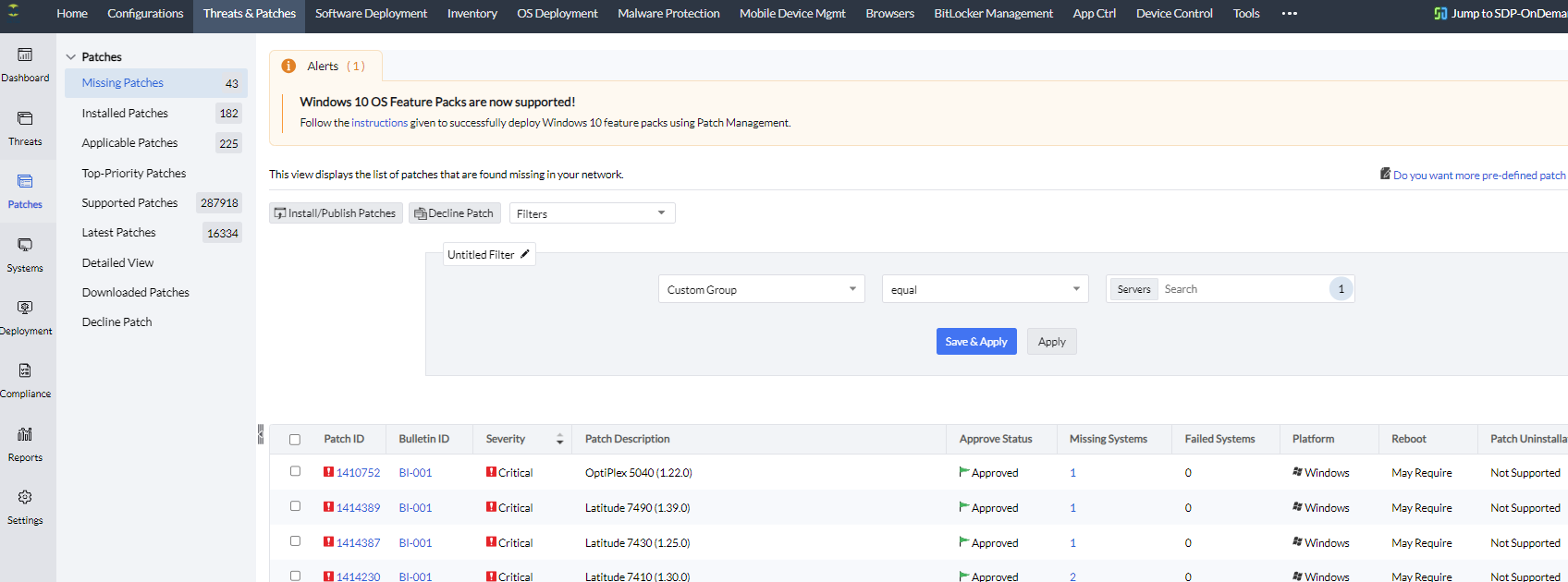 לאחר מכן נוכל לסנן רק את המכונות הרלוונטיות מתוך האייג'נטים, ולצפות בסטטוס הפאצ'ים החסרים בהם.