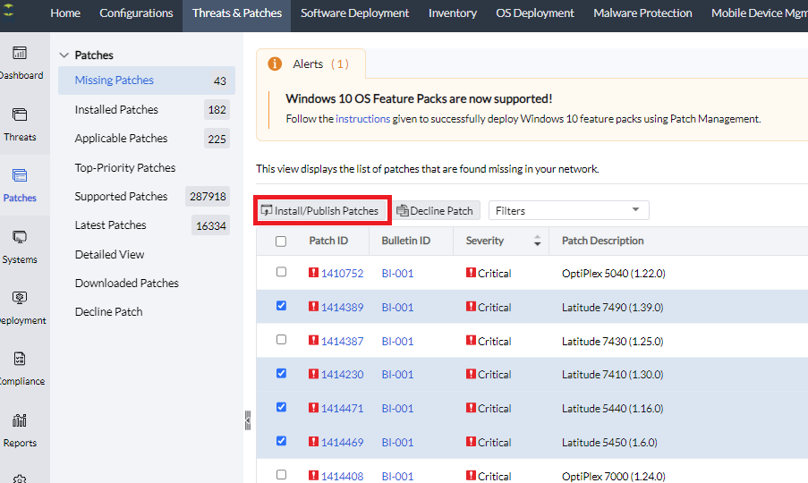 נסמן את הפאצ'ים שנרצה להתקין ידנית, ונלחץ על Install/ publish patches: