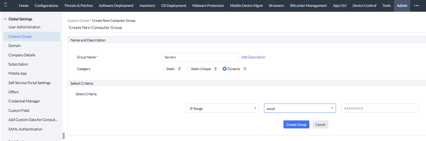 בשלב הראשון נרצה ליצור קבוצה שתכלול את השרתים בארגון, על ידי יצירת custom group מתאים (מפורט גם במדריך - "יצירת קבוצה").