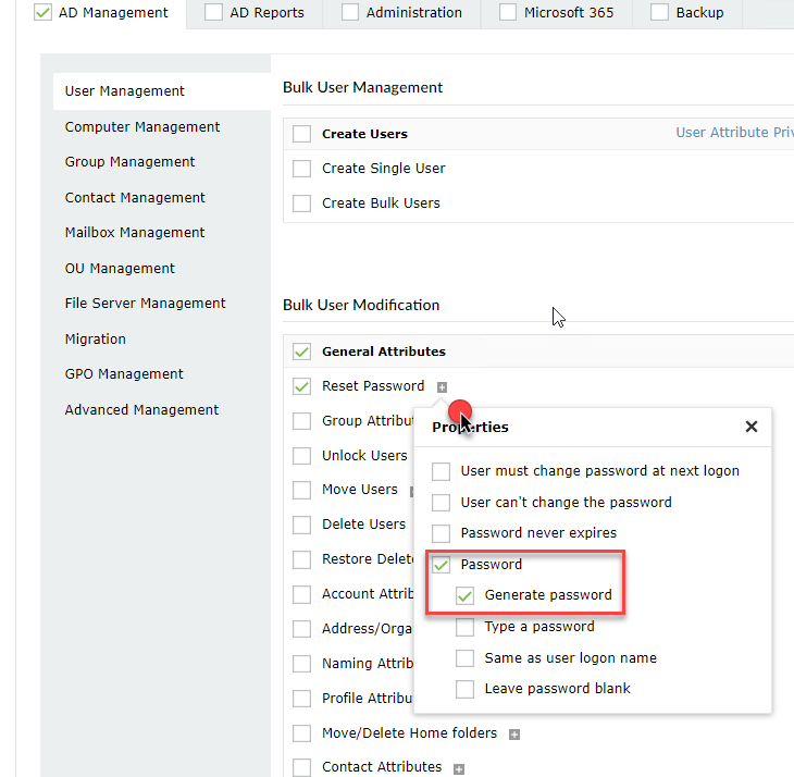 5. ניתן לסמן וי על הפעולות שתרצו להגדיר עבור תפקיד זה, שימו לב שבחלק מהתפעולות ניתן ללחוץ על הכפתור + ולהגביל את התפקיד גם בתוך הפעולות המסוימות, כמו למשל בreset password: