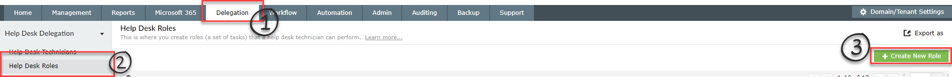 1. יש להתחבר למערכת, להכנס לתוך Delegation>Help Desk Roles וליצור תפקיד חדש:
