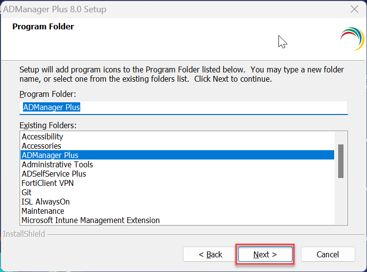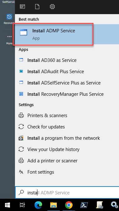א. לחיצה על start וחיפוש ADManager plus לחיצה על install ADMP service.