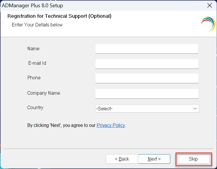 ו. בחלון הבא ניתן למלא פרטים, אם תמלאו אז תיפתח פנייה לצוות הטכני, במידה ולא תרצו ניתן ללחוץ על Skip: