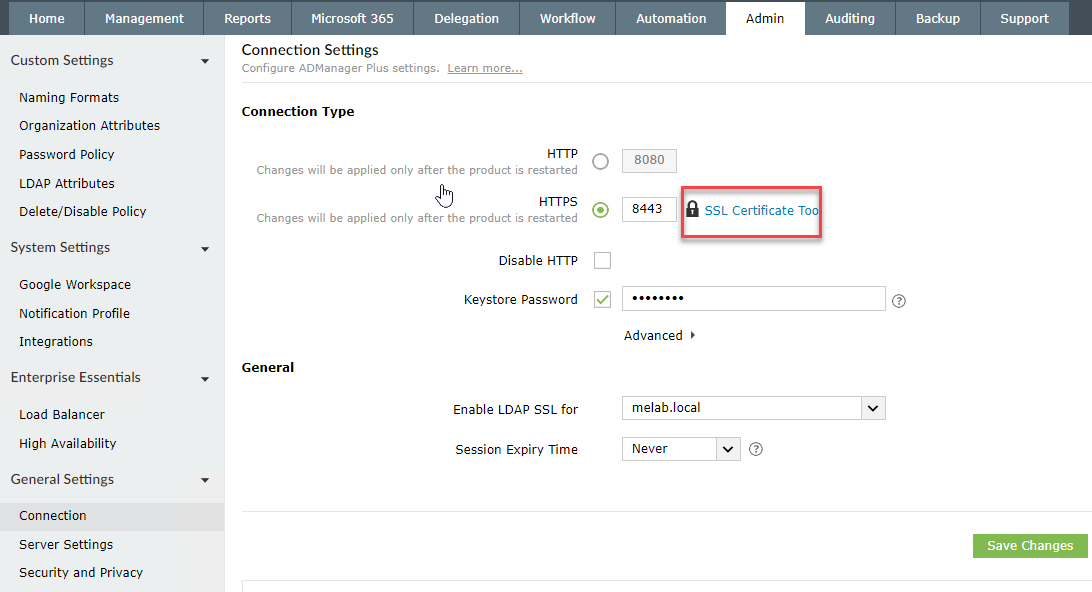 במדריך זה נציג כיצד מחילים תעודת SSL על מערכת ADManager Plus.