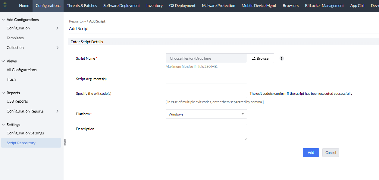ה-Script repository הוא החלק במערכת בו נשמרים הסקריפטים שניתנים לשימוש כחלק ממשימה או policy.