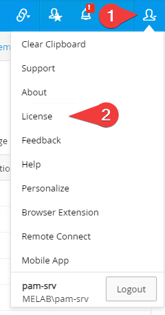 1) ניגש לאייקון המשתמש בצד ימין למעלה ונבחר License.