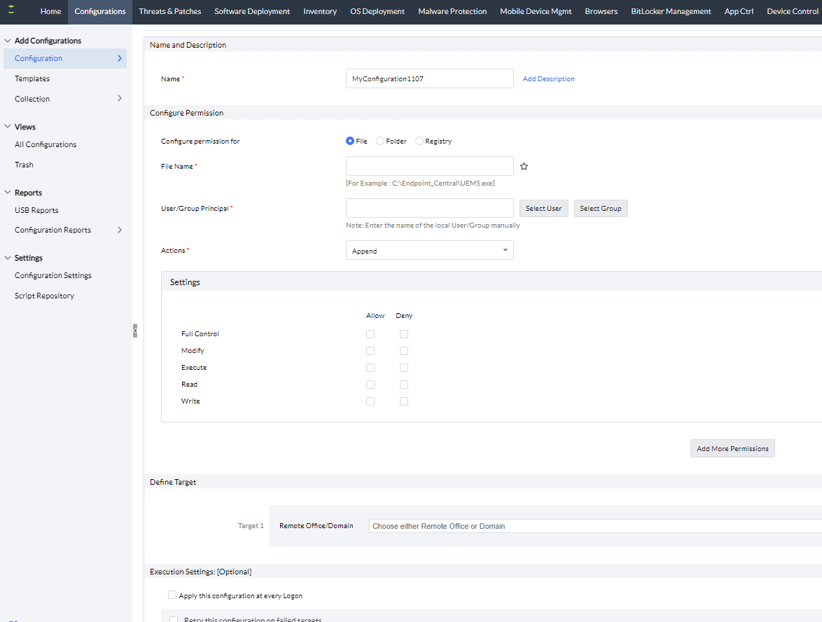 לדוגמה נפרט יצירת קונפיגורציית Permission Management, אפשרות נפוצה ושימושית ליצירת הרשאות גישה לקבצים ותיקיות: