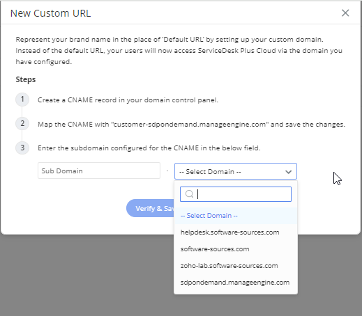 - להפנות אותה ל- "customer-sdpondemand.manageengine.com"