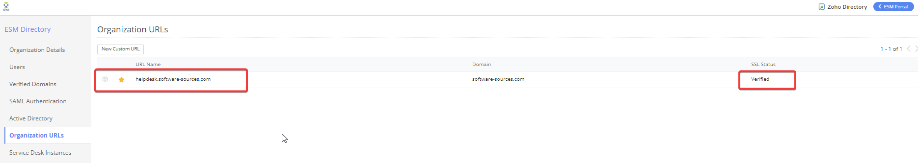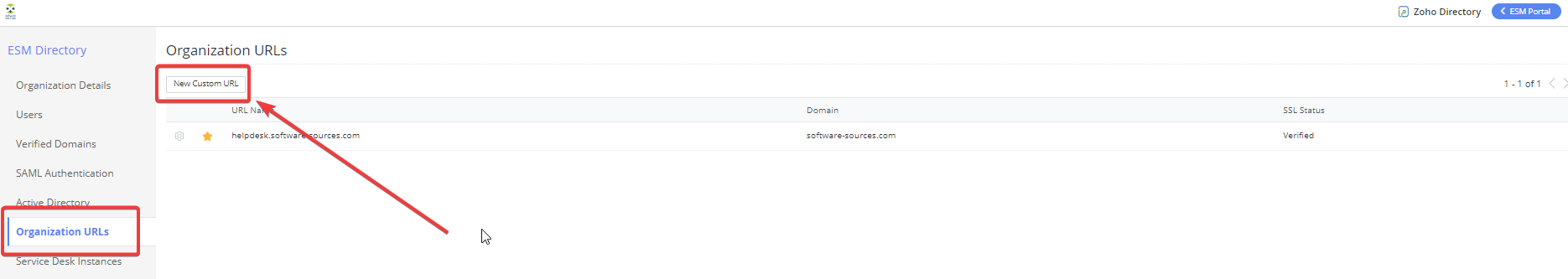 - לאחר מכן לגשת ל- Organisation URLs, ללחוץ על New Custom URL ולהוסיף את ה-URL המבוקש .