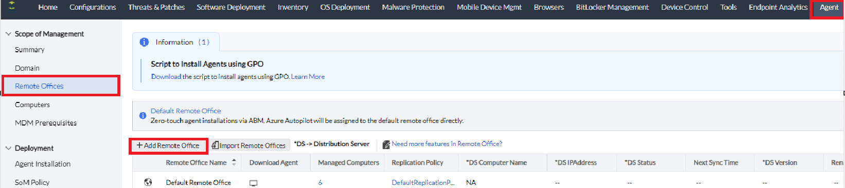 נלחץ על הנתיב הבא: Agent-> Remote offices -> Add remote office