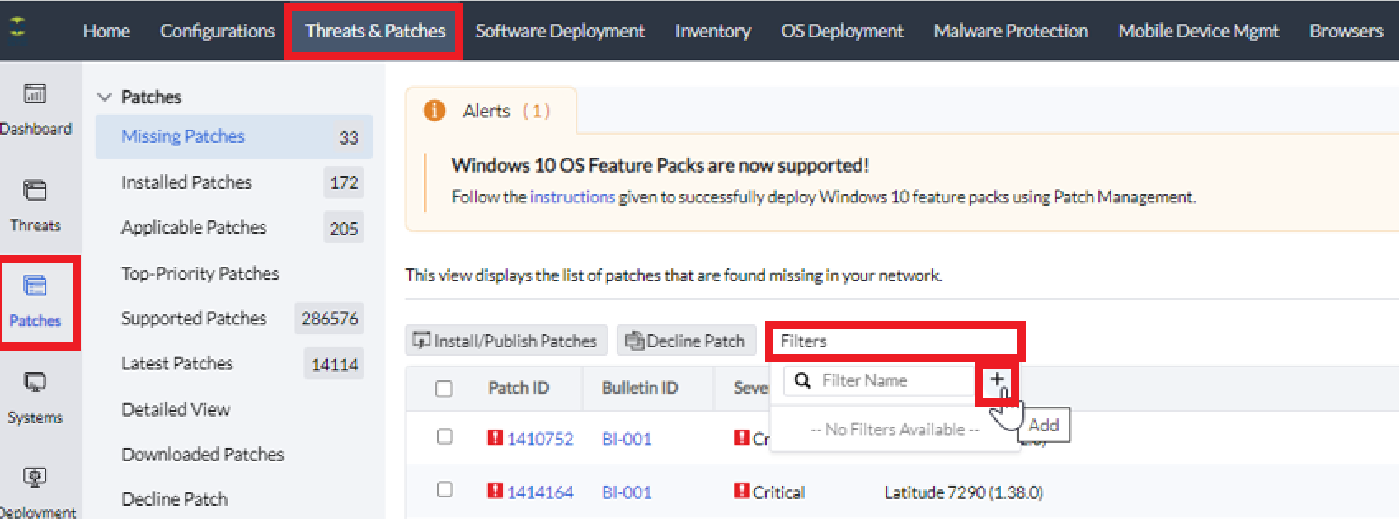 נלחץ על הנתיב הבא: Threats & patches -> patches