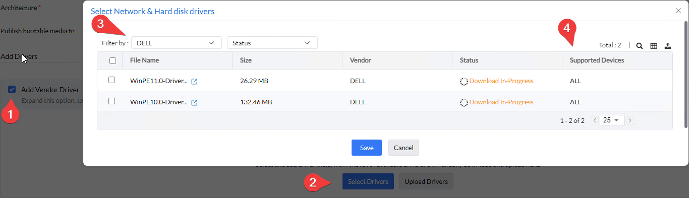לאחר יצירת Image אחד יווצר מאגר דרייברים אוטומאטי שיכיל את כלל הדרייברים שנגזרו מאותה התחנה, אותו נוכל לעדכן גם ידנית בהפצה על יצרנים שונים \ דגמים שונים,