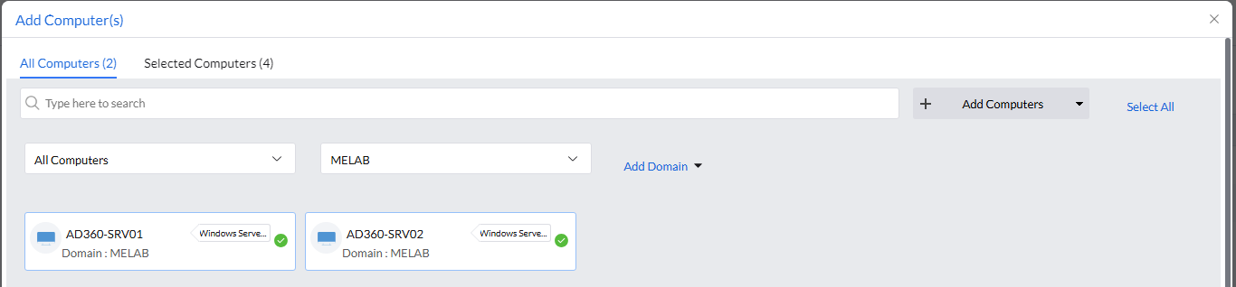 - נבחר בתחנות הקצה דרך ה AD בלחיצה על Add Computers.