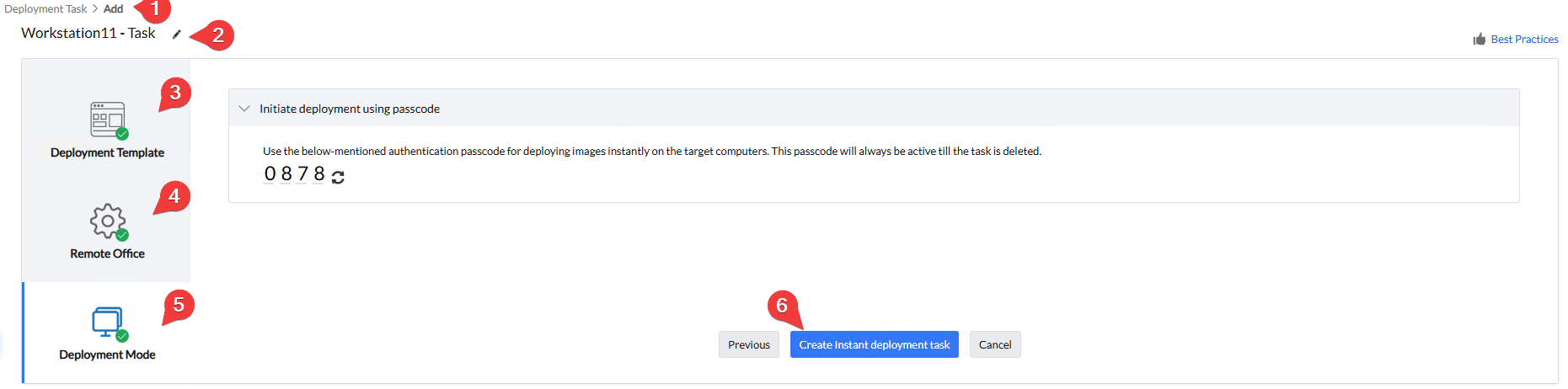 - לבסוף נלחץ על Create Instant deployment task על מנת ליצור את המשימה.