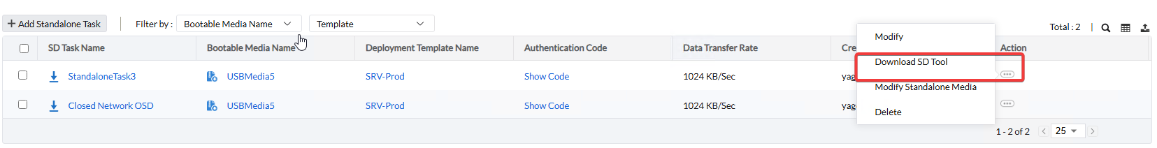 יצירת משימה להפצה בסביבה מבודדת, המשימה תכיל את ה Bootable Media וה Image הדרוש להפצה בתחנת הקצה.