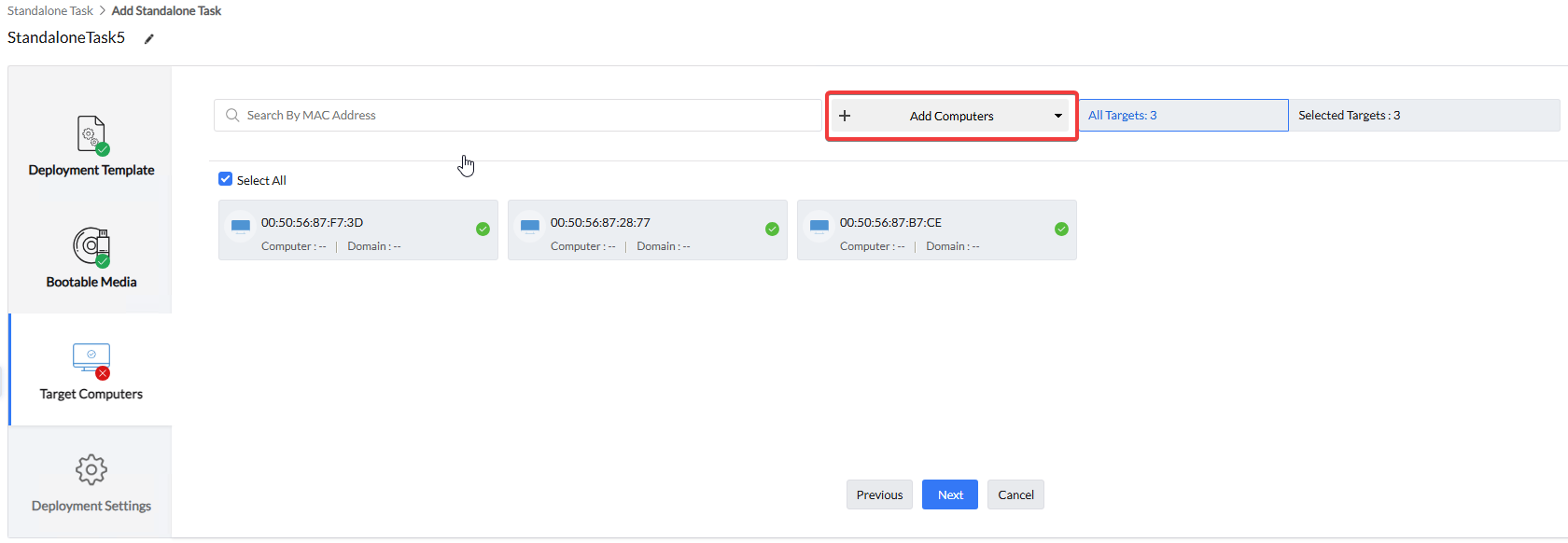 - Select Deployment Template - נבחר בתבנית ההפצה הדרושה למשימה.