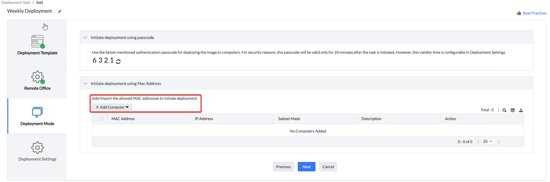 - Deployment Mode - בנוסף לקוד האימות, נוכל הזין למערכת כתובת MAC של מחשבים בהם האישור והפצה תיהיה ללא התערבות ידנית בתחנה.