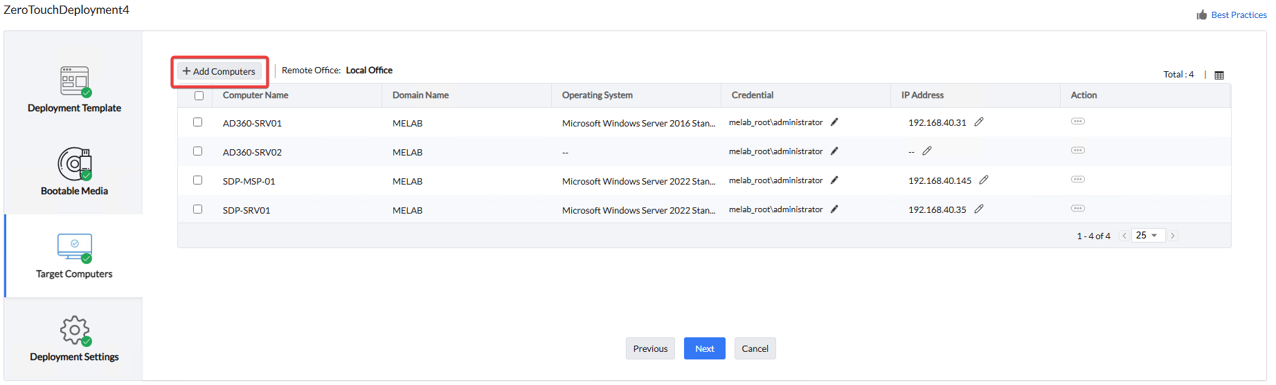 - ניתן לייבא קובץ CSV עם שמות התחנות וכתובות IP, ניתן להוריד קובץ דוגמא דרך Add Computers -> Import from CSV.