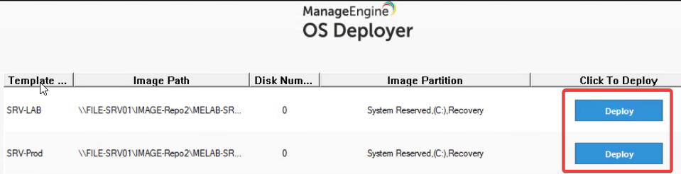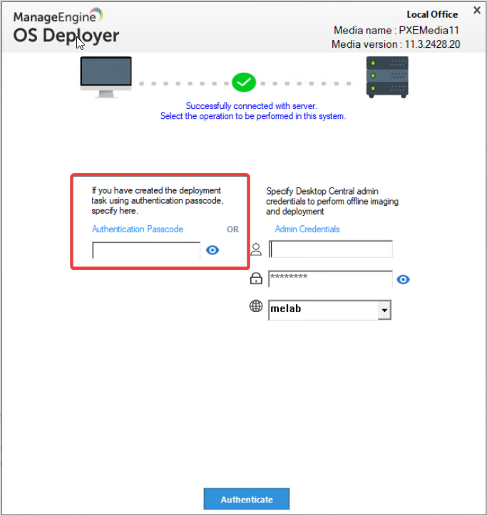 נוכל להפיץ OS כבר לאחר יצירה של Deployment Template, דרך מהירה הנותנת לנו לבחור תבנית מהמערכת ודורשת הזדהות של טכנאי בתחנת הרצה,