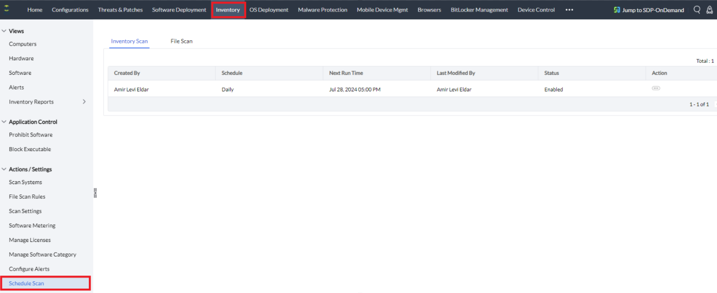 נלחץ על הנתיב הבא: Inventory -> Schedule scan: