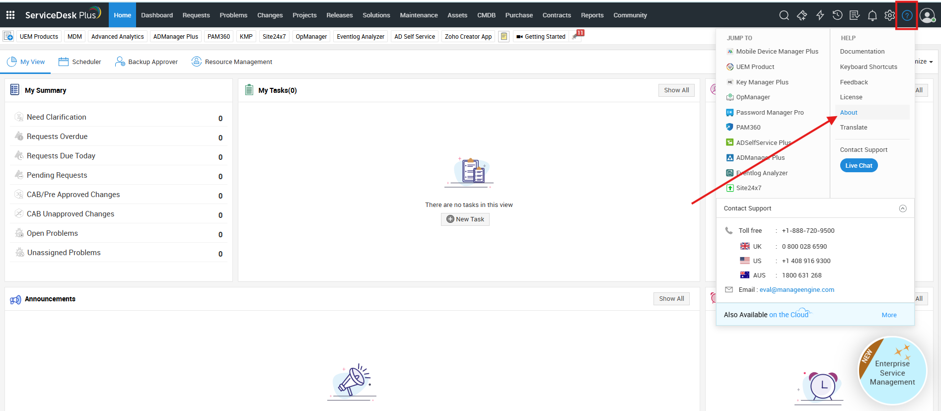 הגרסה הנוכחית בה אתם משתמשים נמצאת בלשונית About: