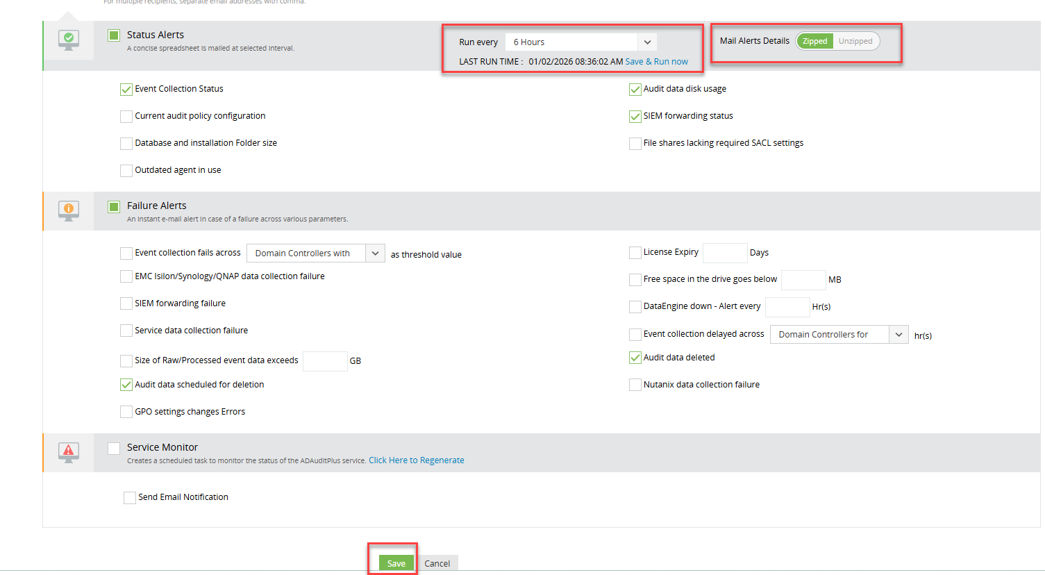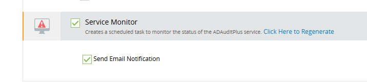 התראה ייעודית לבדיקת זמינות שירות ה-ADAudit Plus עצמו.
