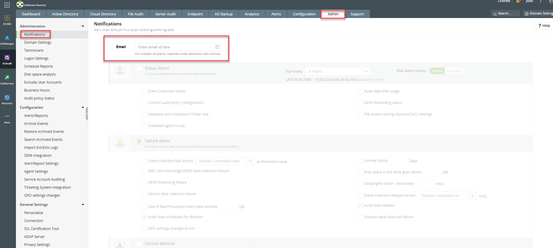 ADManager Plus - איך לקבל התראות בזמן אמת במקרה של נפילת המערכת