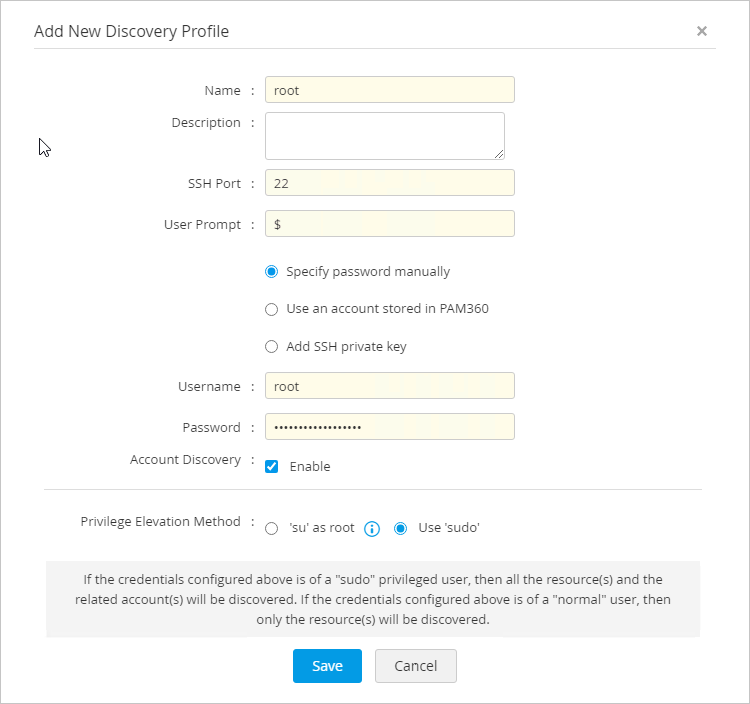 ה) נבחר ב Add Profile - בחלון שנפתח נזין את פרטי משתמש ה root על מנת לבצע גילוי שרתי לינוקס.