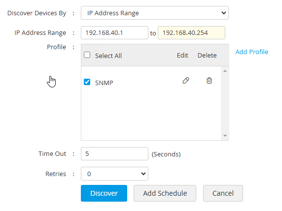 ג) נבחר ב Add Profile - בחלון שנפתח נזין את פרטי משתמש ה SNMP על מנת לבצע גילוי להתקני הרשת.