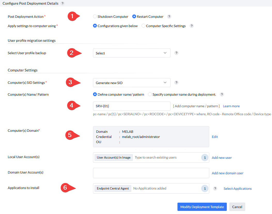 Computer Name/ Pattern : שם למחשב החדש, ניתן לייצר שמות משתנים לפי תבנית, מספרים עולים, סוג מחשב, לפי ה Serial Number וכו'.