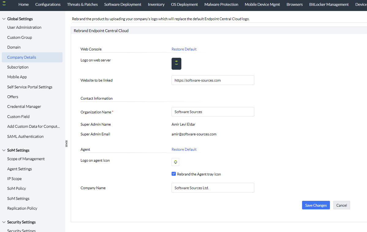 תקציר: במדריך זה נלמד כיצד להגדיר תמונת אייג'נט מותאמת אישית שתופיע בשורת המשימה באופן הבא: נלחץ על הנתיב הבא: Admin-> company details בחלון זה נוכל לעצב את האייקונים של המערכת, עבור סמל המערכת בדפדפן (Web console), ועבור סמל האייג'נט (Logo on agent ...